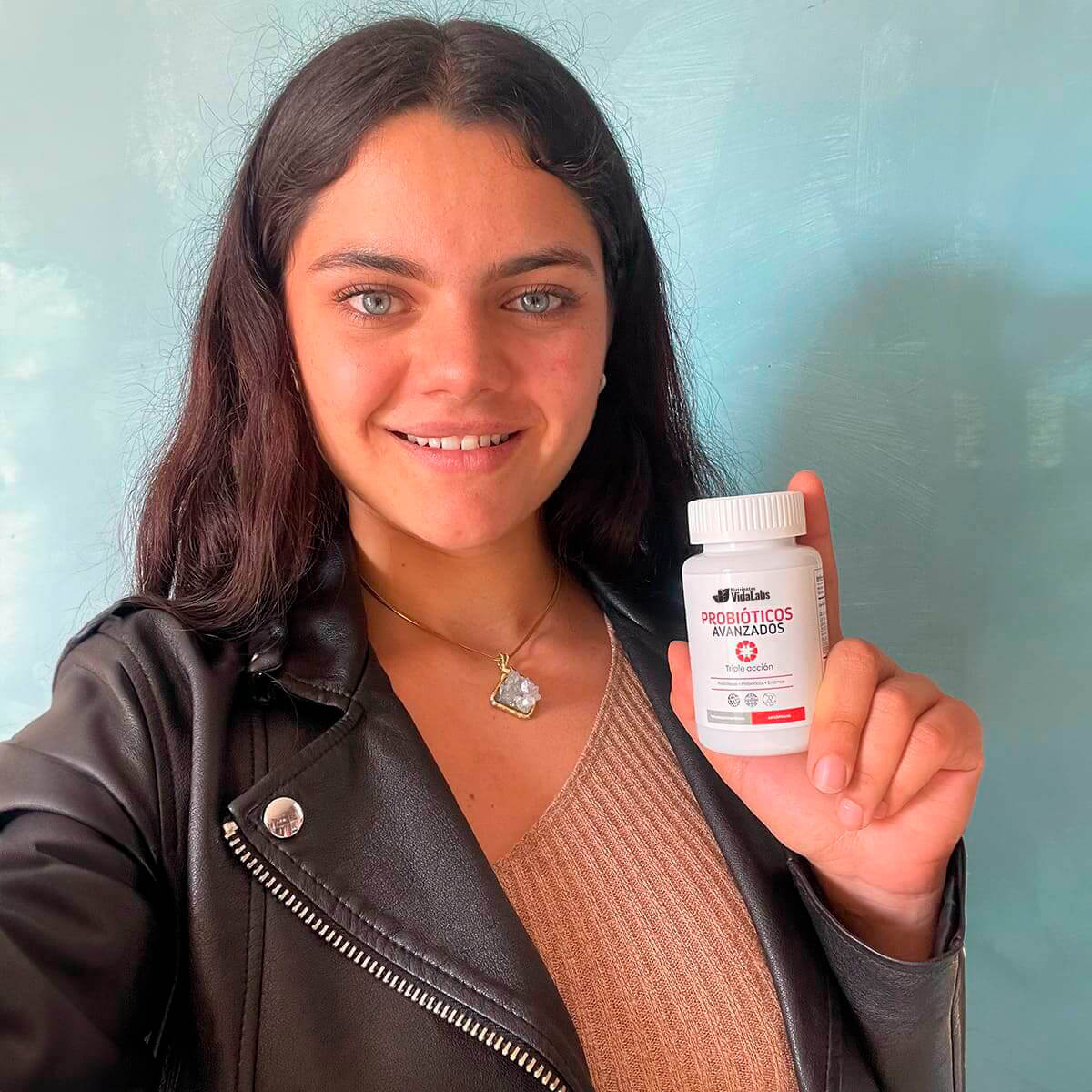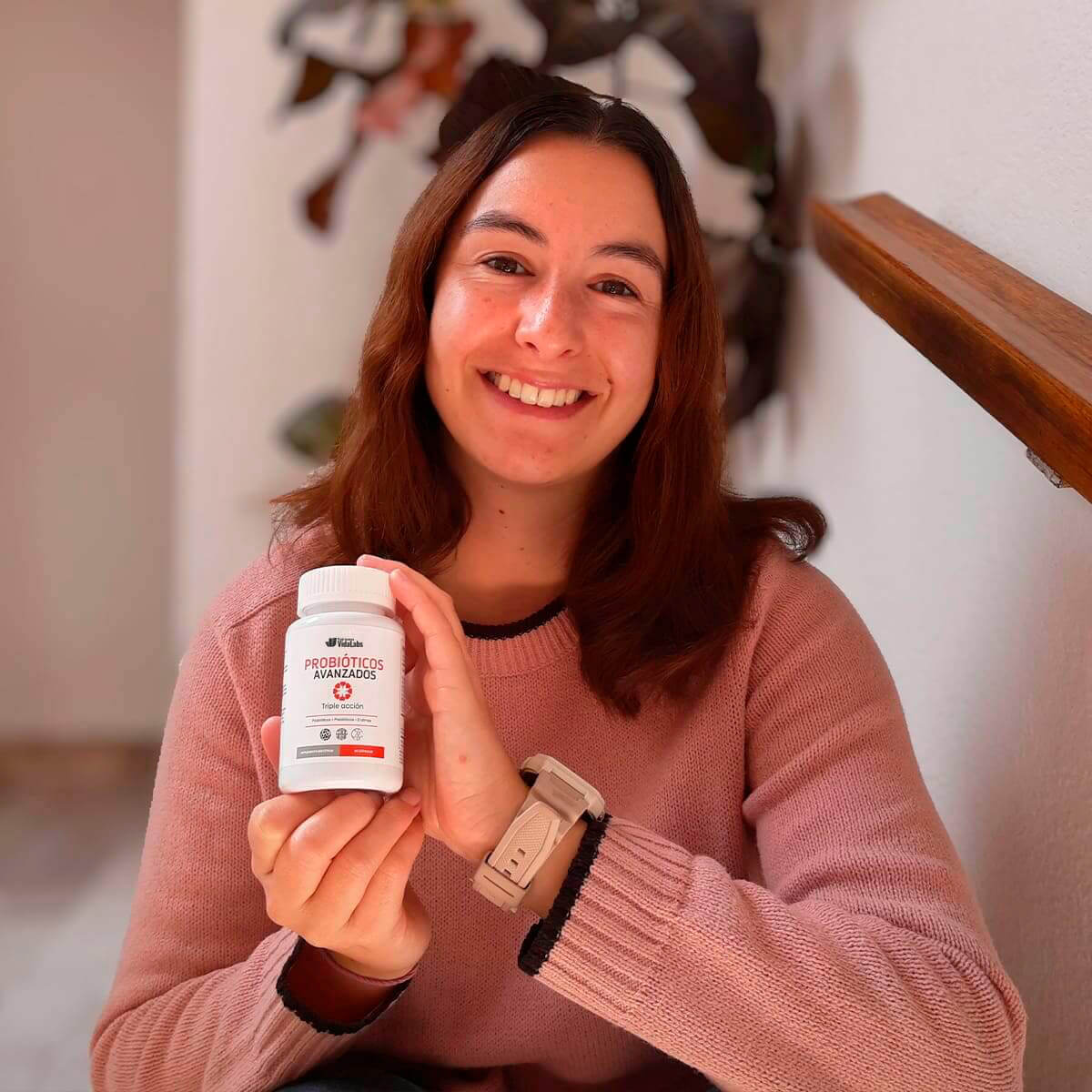 Me encantan los Probióticos Avanzados porque son un suplemento súper completo. Tienen el beneficio de los probióticos con un montón de cepas que nos ayudan a equilibrar la microbiota. Además, traen prebióticos, que ayudan a potenciar el efecto de esos probióticos, porque son el alimento de esas bacterias que metemos con los probióticos. Y, para terminar, me parece una ventaja bárbara que también tengan enzimas digestivas; estas son difíciles de encontrar en otros probióticos y de verdad que hacen la diferencia. Ayudan a que tu sistema esté desinflamado y más liviano. Me parece una opción excelente de suplemento para mejorar la digestión.